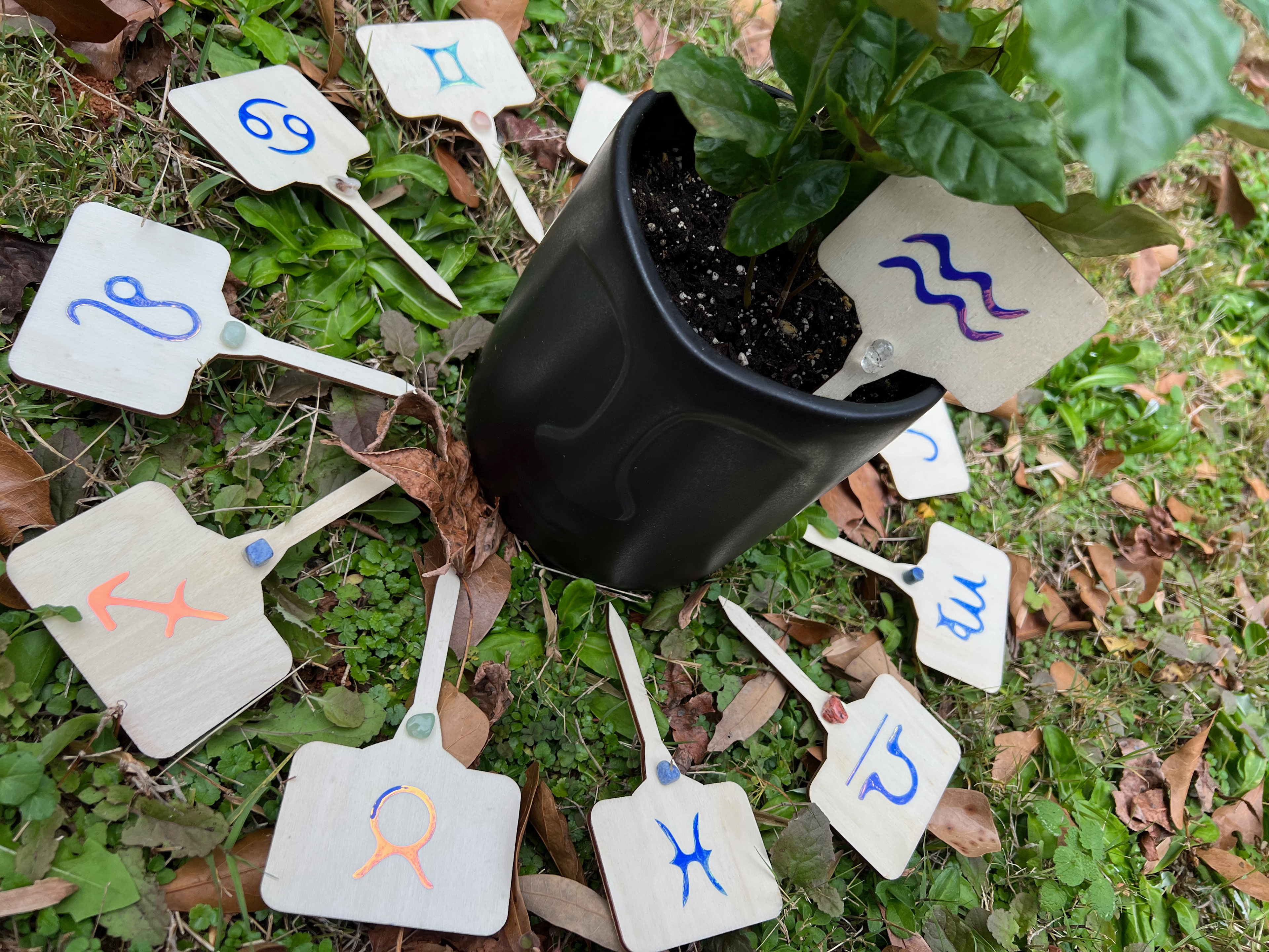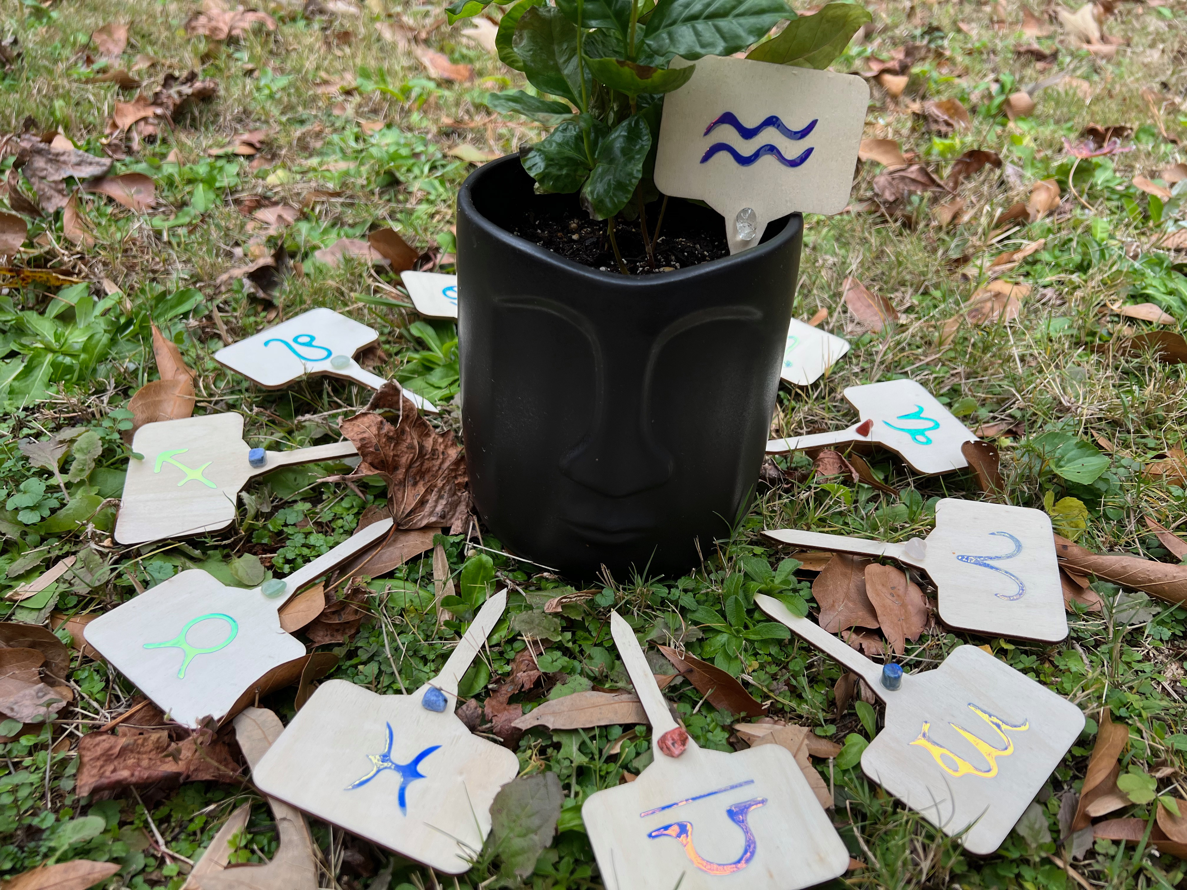 Zodiac Planter Label – Crystal-Infused Home Décor